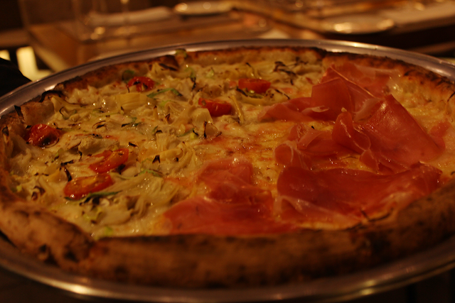 Não sei qual das duas estava melhor. Os protagonistas dos dois sabores estavam ótimos, a alcachofra e o presunto cru. Então fica bem difícil para eleger um sabor como vitorioso. Só digo que comi até (não vou falar que comi até quase explodir, porque eu preciso ser fina e elegante, e mulheres finas jamais falariam isso hahaha).