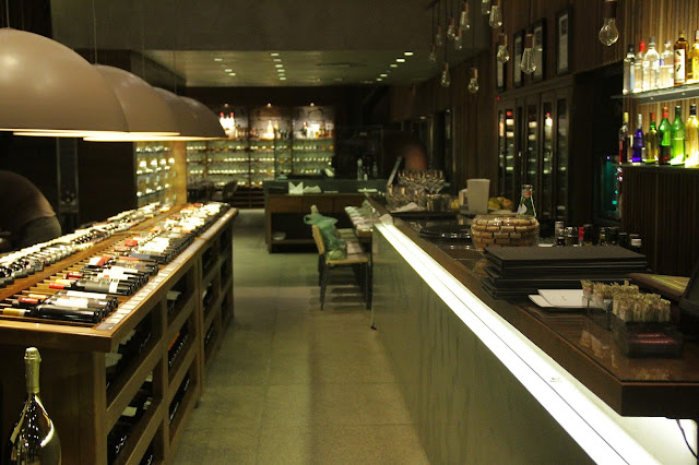 O local é grande, espaçoso e organizado de uma maneira super agradável aos nossos olhos, com toques de requinte e elegância para acomodar qualquer pessoa. Tem um bar enorme, muitos vinhos espalhados pelo restaurante inteiro, um forno à lenha de pizza e mais vinhos, por todos os lados. Um verdadeiro paraíso para os amantes da bebida do Baco.