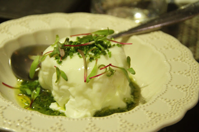 De entrada foi uma burrata! Ahh, eu sei que apelo, mas não pude evitar. Burrata com aquele molho pesto por cima e várias torradinhas, é uma das melhores entradas da vida. É muito bom começar um jantar comendo esse prato. É leve, é saboroso, harmonizou com o vinho e agradou meu espírito de gordinha. Tudo de bom.