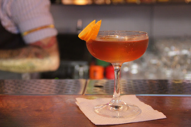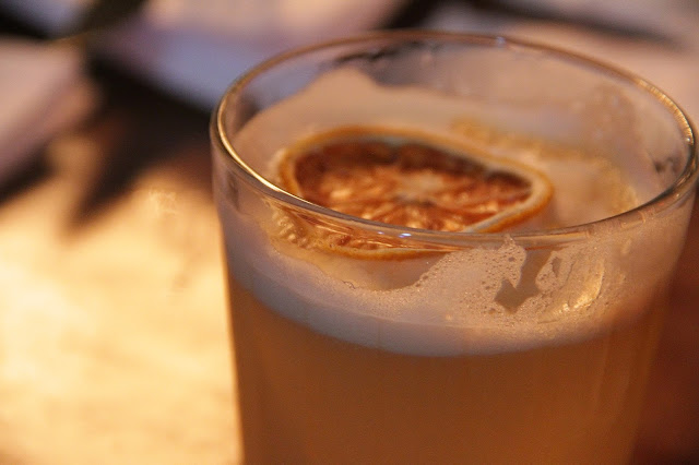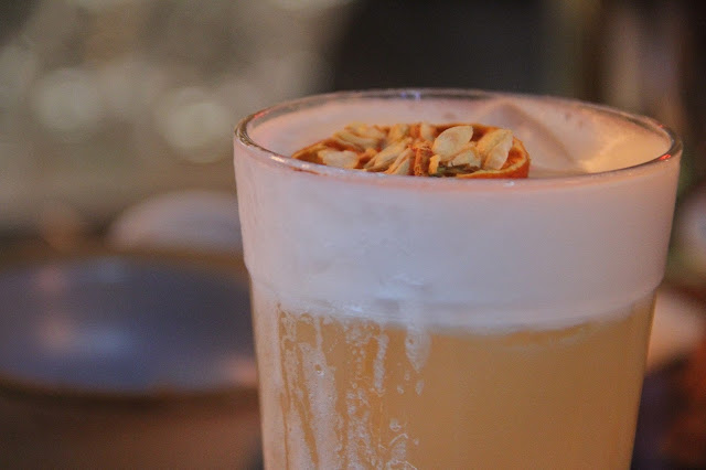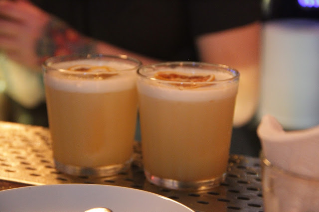 Estava rolando um evento especial onde eles convidaram uma Bartender para criar um drink especialmente para aquele dia, a Stephanie Marinkovic. Todos os drinks tinham que levar na composição o Gold Label, um dos whiskys da linha da Johnny Walker. O drink que ela criou foi nomeado como “Gold Devocion”, que levava o Gold Label, um caramelo de pêssego que ela mesma fez (ela nos deu um pouco para provar e estava fantástico), limão siciliano, tintura de canela e clara de ovo. Estava muito aromático e saboroso o drink dela, dava para sentir bastante a canela, mas na boca todos os sabores saltavam. Muito bom.