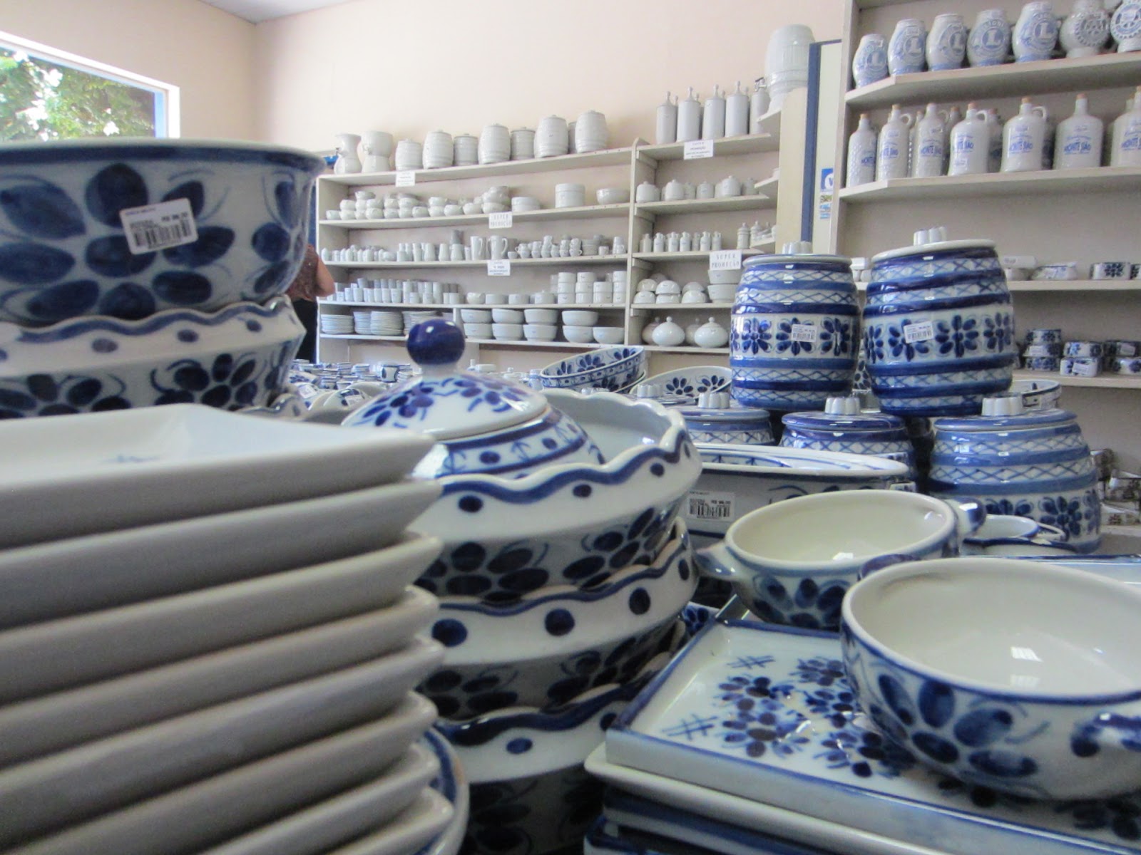 Quero contar um pouco da história sobre a fábrica de porcelanas, que é a única que produz a porcelana artesanal azul no Brasil. Foi fundada no ano de 1959, com produção pequena e fazia apenas por encomendas. A jarrinha azul de Portugal foi o primeiro pedido e fez tanto sucesso, que logo entrou na linha de produção. O processo era artesanal e continua sendo até hoje. Todo o maquinário era criado por eles e até a fábrica não se rendeu a tecnologia e até a queima das porcelanas é feita num forno à lenha.