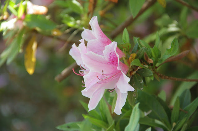 Árvore de fruta ao lado de lavandas, um acolhe pássaros bem no meio de tudo, com azaléias enormes, flores de pêssego, cerejeira, orquídeas, mais pássaros voando… Eu fiquei louca com esse jardim. Se eu tivesse a chance de criar um jardim, seria nesses moldes. Nada certinho. Tudo bagunçado mas perfeito. Impossível não se apaixonar.