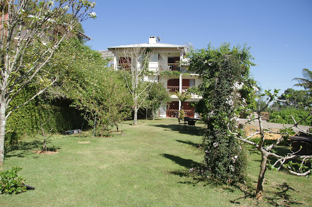 Bom, agora quero falar de dois detalhes que me deixaram apaixonada. Primeiro, é o jardim. Gente, quem me conhece, sabe que eu amo flores. Para mim, as coisas mais perfeitas que a natureza poderia criar. E o jardim dessa pousada, é simplesmente fantástico. Mas não pense em algo perfeito. Nãoooo! Ele é totalmente caótico, sem nexo algum e todo bagunçado.