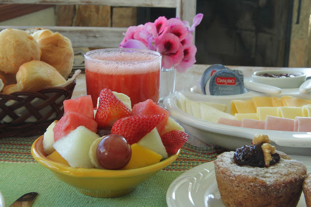 E o outro quesito que me fez cair apaixonadinha por lá, foi o café da manhã. Quando eu disse que eles ganharam o premio de melhor café da manhã de Monte Verde (pelo menos dos que eu já experimentei), não estava sendo exagerada. Mas não pense que é algo grandioso, com balcões enormes abarrotados de comida. Nada disso. Lá o conceito é simples. Você olha o cardápio, escolhe o que quer (o que quiser, a quantidade que desejar) e eles preparam na hora para você.