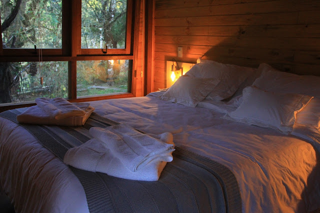 Fiquei hospedada em uma das cabanas, que são feita de madeira. O que dá um ar mais quentinho, mesmo nos dias mais frios. Mas dei uma espiada nos chalés e nos apartamentos. Os chalés são de babar, com uma banheira linda com vista para a mata. Mas, curti minha cabana, mesmo ela não tendo banheira. Sabe por quê? Deu para aproveitar a jacuzzi do hotel que fica ao ar livre, do lado da sauna úmida. Delícia.