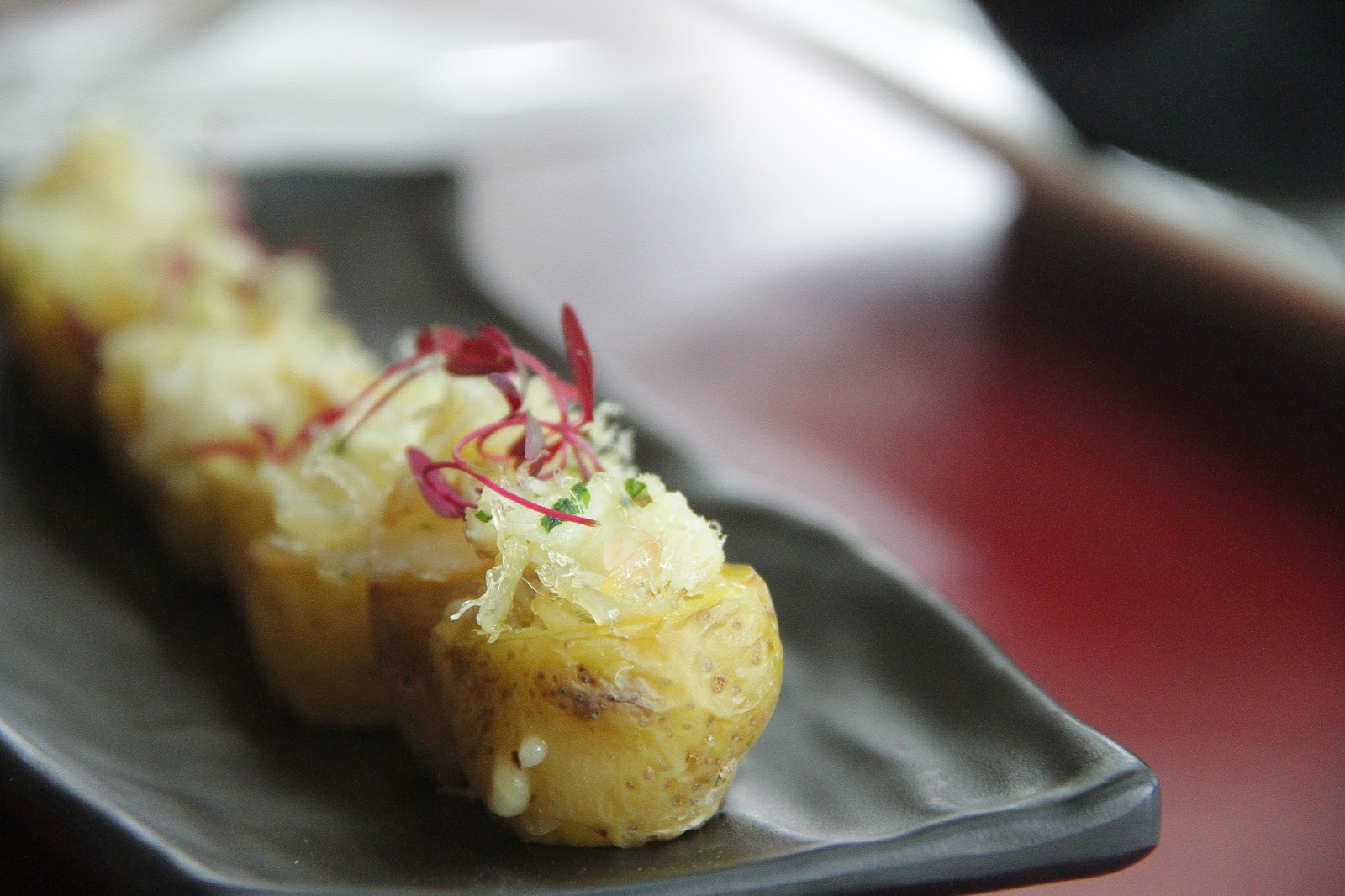 De entrada experimentei a Bruschetta Desconstruída de Frango Garam Masala (meio apimentadinha, bem saborosa), as Barquetas de Brandada de Bacalhau com Pérolas Picantes (dos deuses, estava no ponto certo, sabor perfeito) e a Caçarola e Polvo Pellegrino com Pão Defumado (também estava uma delícia, o polvo macio e o molho super combinando com todo o resto). Estava adorando tudo e só estava nas entradas. Estava esperando ansiosamento pelo meu prato principal escolhido.
