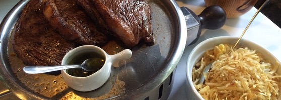 Ah! Vegetarianos que me perdoem, mas vocês sabem que eu como de tudo, né?! Faz parte do trabalho! O prato chamado Biro Biro é o carro chefe do restaurante da cidade especializado em carnes, que fica num shopping pequeno, na avenida principal. Você não vai se arrepender de pedir esse prato. A carne acompanha arroz, bacon, batata palha, farofa, ovos e cebola. Parece uma mistura maluca, mas é muito bom!