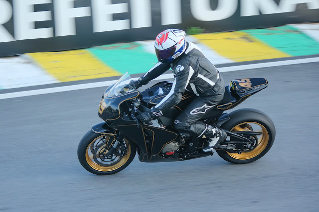 Esse evento que rolou se chama ‘Test Ride Interlagos”, onde as pessoam pagam valores X e podem pilotar as motos que estão lá a disposição. Óbvio que precisa da carteira de habilitação em mãos e só. Muito legal pilotar em Interlagos, eu amo esse autódromo e adoro o desenho dele, gosto por ele ser bem variado. Curvas de baixa, de alta, subida, descida, retas longas, etc. Também teve etapa do Campeonato Paulista de Motos, nas categorias Light e Principal. Bem bacana e não tinha ninguém assistindo. Chato, né?! Um evento tão legal e ninguém se interessa.