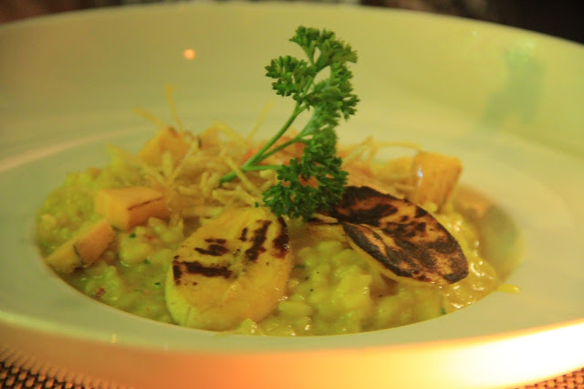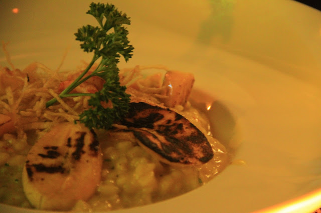 Provei também o risoto de lagostim e estava muito bom. É feito de arroz arbóreo com lagostim e curry, tartare de banana da terra e crispy de batata. Para quem gosta de frutos do mar, essa é uma opção muito boa.