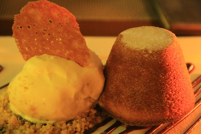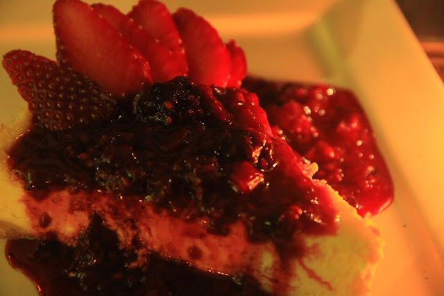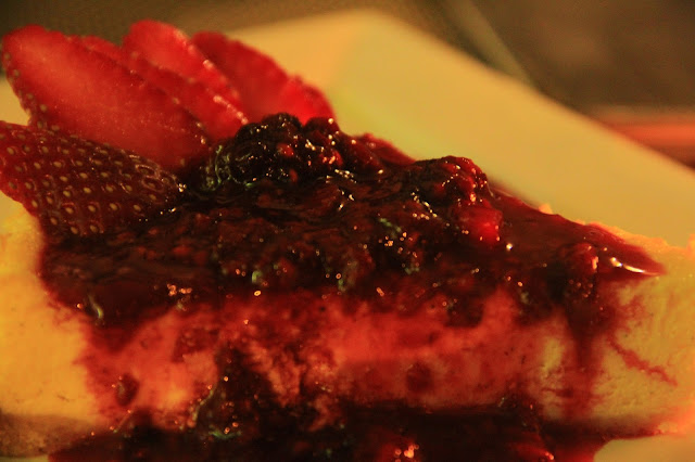 Provei o Petit Gateau de doce de leite, que é feito com farinha de amêndoas, recheado com doce de leite argentino (peloamordedeusporqueissoétãobom?) servido com uma bola de sorvete italiano de baunilha. Demora uns 20 minutos para ficar pronto, mas vale a pena esperar. Enquanto não chega, faça o que eu fiz, peça outra! Como o cheesecake. Que, diga-se de passagem, é muuuito bom. Tradicional, delicioso. Sabor equilibrado entre o queijo, a massa de biscoito e a calda de frutas vermelhas. Simples, porém bem executado e saboroso.