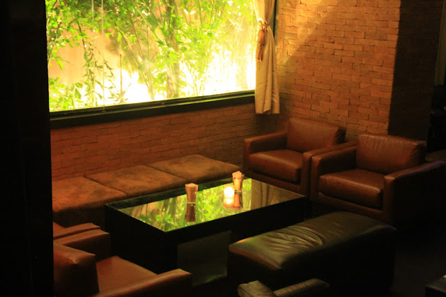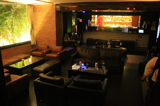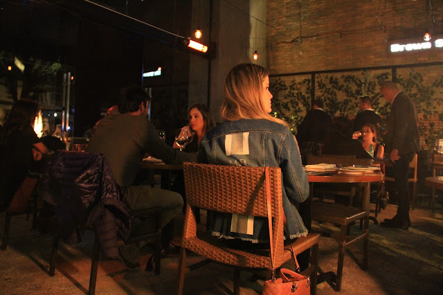 Primeiro, quero contar sobre o esquema do restaurante. Existem 3 ambientes. O externo com mesas para jantar, a parte do meio igualmente com mesas e a parte do fundo, que fica um lounge lindo com um bar e muitos sofás, perfeito para aquelas reuniões de amigos e amigas, até mesmo, despedidas de solteiros. Fica rolando um som ambiente por todo o restaurante, sempre mais pra linda do rock.