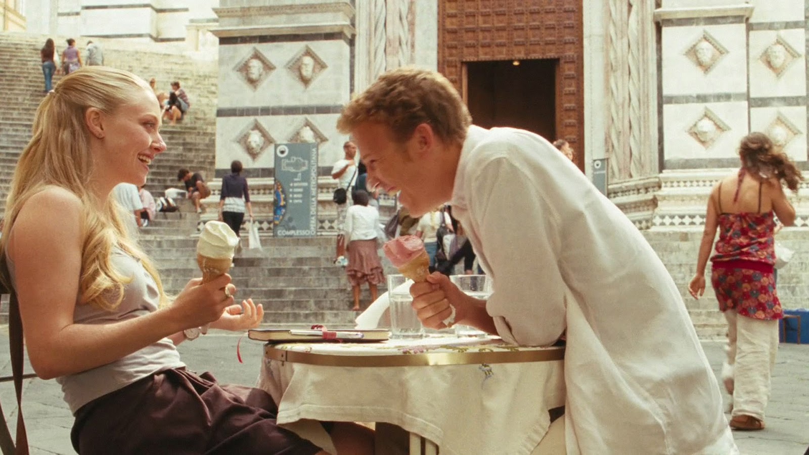 Os três partem para a região da Toscana, mais precisamente Siena. Além de haver dezenas de belas imagens de toda a região da Toscana, eles mostram bem em uma cena a Piazza del Campo, em Siena. Essa Piazza fica no lugar onde antigamente abrigava um Fórum Romano e é considerada uma das maiores praças medievais de toda Europa. Hoje em dia, ela concentra cafés, sorveterias e restaurantes, atraindo o público de turistas e dos jovens que moram na cidade. A cena onde Sophie e Charlie tomam sorvete e se lambuzam com ele, é ali.