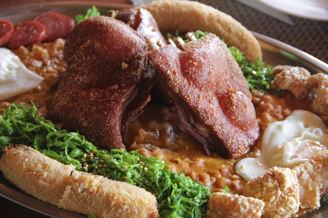 Outro restaurante que eu não conhecia, mas estava na minha lista. O Villa Amarela fica bem perto da entrada principal da cidade e não tem como errar, lá é mesmo amarelinho. Eles possuem vários pratos bacanas no cardápio. Mas o prato que está participando do festival é o Leitão Pururuca. O prato é composto pelo leitão pururuca (deeerr), arroz, banana empanada, ovos, tutu de feijão, calabresa e couve refogada. Quer prato mais típico de Minas Gerais? Quer prato mais mineiro? Difícil.