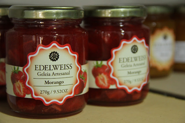 Ouunnn! Esse lugar foi outra novidade na minha vida de exploradora de Monte Verde, pois eu neeem imaginava que pudesse encontrar algo assim por aí, dando sopa para a gente ir visitar (na verdade, o lugar não dá sopa, nós é que demos sorte de ter tido o privilégio de conhecer). O senhor Edmundo é um espanhol que fala com sotaque ainda, já morou em diversos lugares do mundo, mas escolheu Monte Verde para realizar o sonho de cozinhar profissionalmente. Ele era cientista e trabalhou até na ONU. Hoje, aposentado, ele produz com a ajuda de sua mulher, 16 sabores de geleias, doces de corte (aqueles mais durinhos que não desmancham fácil) e um licor de cachaça, mel, limão e gengibre. Uma delícia deliciosa da vida. Para o festival ele está com dois produtos, o doce de corte de physalis e a geleia de morango, que já um clássico.