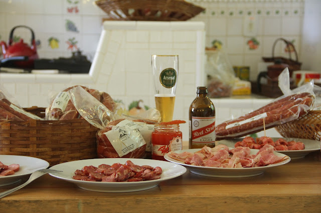 Eis um lugar que foi uma grata surpresa, pois nem imaginava que existia algo assim lá em Monte Verde. Estou falando do Manduca. Fica num sítio fofo, bem perto do centro de Monte Verde e podemos conhecer o processo de fabricação dos embutidos. O Manduca produz embutidos artesanais e produtos defumados para ser mais exata. Mas não tem só elementos defumados, eles estão produzindo até hambúrgueres. Basicamente, as melhores partes do porco defumadas. No caso, para o festival, eles estão trabalhando com quatro produtos. Bacon (nhaaaaammm), joelho defumado sem osso, linguiça calabresa defumada e linguiça fresca artesanal. Tudo que eu provei, estava perfeito e harmonizando muito bem com esse pessoal que vou falar aqui embaixo…
