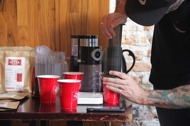 Para começar, existem grãos que passam por barris de Bourbon e de Cachaça Amburana. Não estou brincando e posso contar um segredo? Parece que o café tem teor alcoólico sim! Essa linha foi batizada de Barrel Aged. Eu já digo aqui na cara de todo mundo, esse café que passou pelo barril de Bourbon foi disparado o que eu mais gostei. Parecia mesmo que estávamos bebendo um Bourbon. Demais!