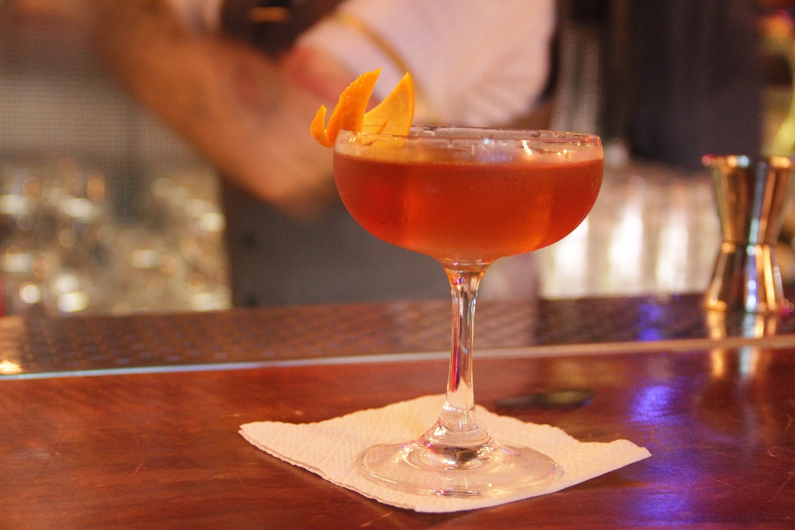 O Bartender da casa, Leonardo Massoni, criou dois drinks. Ele, além de simpático, é super criativo. Adorei os drinks dele também. O primeiro que eu provei, foi uma releitura do clássico Manhattan, que se chamou “O Velho João” (alusão ao Johnny? hahaha), que levava o Gold Label, vermute tinto, chartreause verde (calma, também perguntei o que era e é um tipo de licor, não um alienígena), St. Germain e foi aromatizado com laranja bahia. É aquele drink forte, feito para as mocinhas duras na queda (o/ tamo junto, meninas). Gostei bastante, lembra o Manhattan, mas tem sua própria personalidade. Adorei!