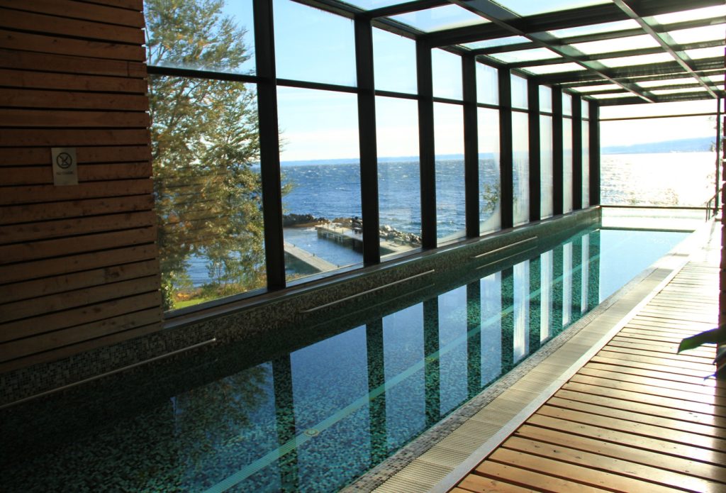 O Hotel AWA possui um SPA bem completo e seguindo a linha de todo o resto, lá também temos a integração com a parte de fora, com as paisagens. A piscina é climatizada, por isso podemos usar o ano todo. Mas caso não queira nadar na piscina, pode se aventurar na hidromassagem enorme (tem capacidade para até 6 pessoas tranquilamente, ou até mais) que também tem vista para o lago e para o Osorno. Caso queira relaxar ainda mais, pode agendar uma massagem ou algum tratamento estético. Existem diversas opções e com certeza vai deixar sua viagem e hospedagem ainda mais especial.