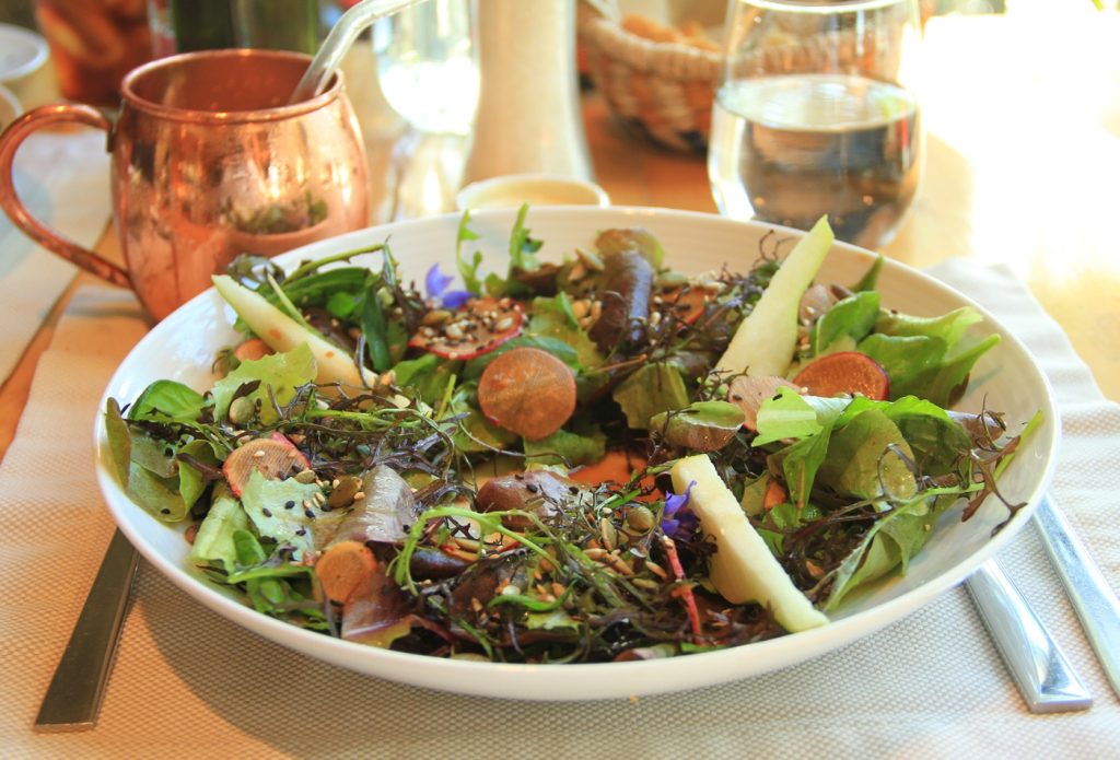 Claro que os frutos do mar e os peixes são as especialidades da casa, mas podemos provar todos os tipos de pratos. Como eu estava numa pegada mais natural, sempre dava preferência aos pratos sem carne, mas isso não significa que não provei. Pedi várias vezes um salmão, truta (por favor, comam muita truta quando estiverem por lá) e até carne vermelha, que estava sempre perfeita. Era uma explosão de sabores em nossas bocas, sempre. Todos os pratos que provamos estavam nota 10 com louvor. O restaurante do Hotel AWA é com certeza um dos melhores da região, não ficando atrás de grandes nomes da gastronomia. Com certeza, fazer as refeições no hotel, provando bons rótulos de vinhos chilenos, com pratos feitos com diversos ingredientes locais, fez toda a diferença.
