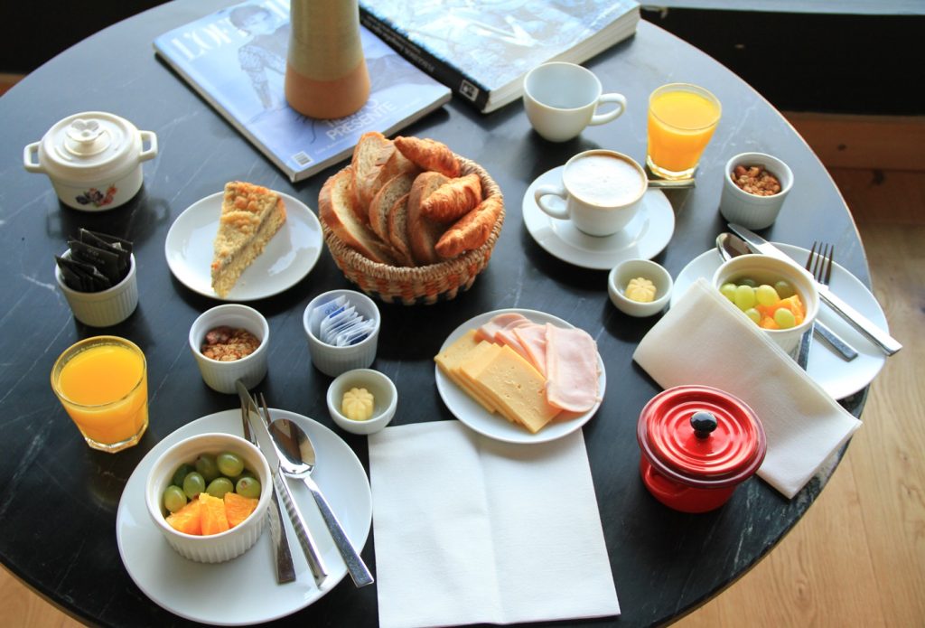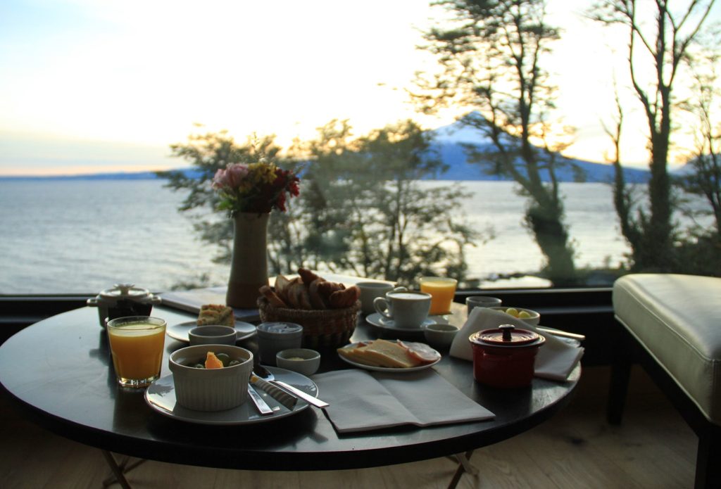 Todas as suítes possuem vista para o lago e também para o vulcão Osorno, que fica bem na frente do hotel, mas do outro lado do lago. E absolutamente todas as suítes são espaçosas, confortáveis e quentinhas. Mesmo durante o verão, pode fazer frio na região sul do Chile, por isso é importante manter os quartos sempre aquecidos. A cama é enorme e não dá vontade de sair de lá. No último dia, tomamos o café da manhã (que é cheio de variedades deliciosas para a gente começar o dia da melhor forma possível) em nosso quarto, que era o que tinha a melhor vista para o lago e para o vulcão. Com toda certeza foi uma experiência memorável. Não sei vocês, mas a gente ama um belo café da manhã quando estamos em viagem. Parece que o dia começa mesmo com o pé direito. É sempre um dos melhores momentos do dia.