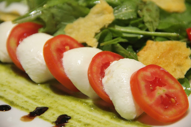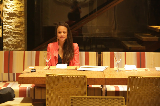 Bom, agora quero contar sobre o restaurante do hotel. Ele é aberto para quem não está hospedado no hotel, então devo dizer que ele é um dos melhores de toda a Ilhabela. E olha que conheci vááários dos bons restaurantes da ilha. Pedimos de entrada uma salada Caprese, só para tentar parecer que somos um casal fitness (só para tentar).
