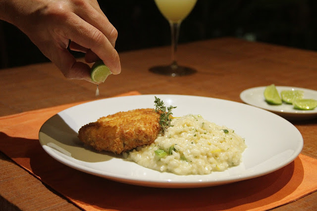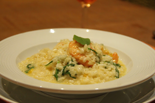 Para os pratos principais, o Ale escolheu um bife à milanesa (que ele ama) com risoto de abobrinha, que estava simplesmente excelente. Eu escolhi um risoto de camarões com folhas verdes cozidas junto ao risoto. Bebi um Aperol para completar o jantar. O meu prato estava tão bom, que no almoço do domingo o Ale pediu esse risoto para almoçar. Estava demais. Os pratos com apresentação linda, combinação de sabores deliciosa e podemos sentir no paladar a qualidade de cada ingrediente. Divino!