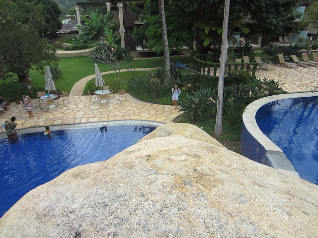 Duas piscinas deliciosas para os adultos e uma para crianças. Além das inúmeras espreguiçadeiras ao redor das piscinas, para a gente pegar um sol ou descansar (ainda mais). Tinham muitas famílias com crianças, então esse hotel comporta esse tipo e turista também. Mas, devo confessar que os casais são os mais sortudos entre todos os hóspedes.