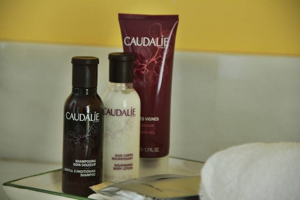 No banheiro tinha uma banheira linda, naquele estilo europeu e muuuuitos produtinhos da Caudalie. Meus olhos até ficaram em formato de coração (hahahaha). Maravilhoso. Ah, sem esquecer de mencionar que quando cheguei ao quarto, tinha uma cesta enorme de frutas coloridas e frescas me esperando. Tinha até physalis e framboesa. Uma delícia. Comi tudinho!