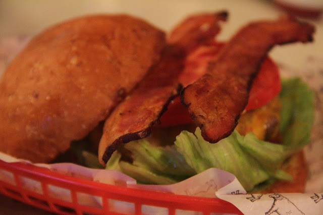 Lá no Meats, vc consegue ficar na dúvida entre qual lanche pedir, pois são muitas opções. Mas caso vá pela primeira vez, peça algum dos lanches básicos, como o Cheeseburger ou o Hamburguer mesmo. Eu pedi o BLT que vem com cheddar brasileiro, alface, tomate e bacon. Uma delícia. Tudo no pão de mandioquinha. Pode adicionar outras coisas ao lanche e ir montando do jeito que vc quer.