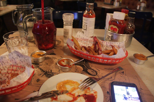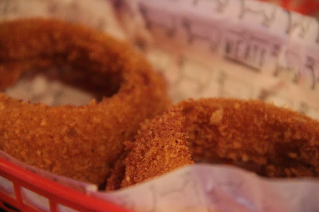 Eles possuem o Onion Rings de entrada. Que são anéis gigantes de batata, empanados e fritos. Super combina com o ketchup rústico deles, mas a maionese da casa acompanha essa entradinha. Também provei as batatas. Tem a opção de misturar batata doce com batata normal. Eu optei por essa e adorei. Gosto dessa mistura, mas confesso que minjas favoritas ainda são as batatas normais com bastante sal.