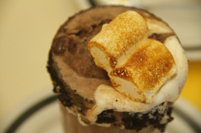 Os novos sabores são esses: chocolate com brownie e marshmellow (aaaaaffffff) e um de frutas vermelhas também com marshmellow. O de frutas vermelhas é mais azedinho, ideal para quem quer comer uma sobremesa não tão doce e não se sentir tão culpado. Agora, se você quer atolar mesmo os dois pés na jaca, peça o de chocolate. Bem doce, bem perfeito para aqueles que tudo que precisamos é de uma gordice bem especial. Atenção para o pedaço de marshmellow assadinho em cima para completar a decoração.