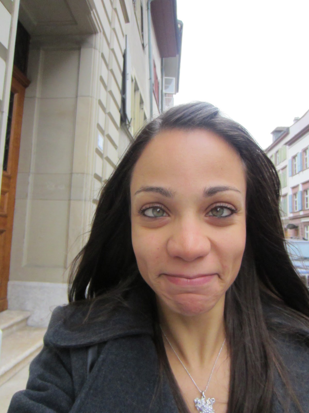 Era muito cedo, estava frio bagaraaaai, eu estava me despedindo da cidade de Basel. A câmera na minha mão, ninguém na rua. E eu fiz um book de caretas. Essa é a menos ruim. Morro de rir com todas! Sou muito idiota.