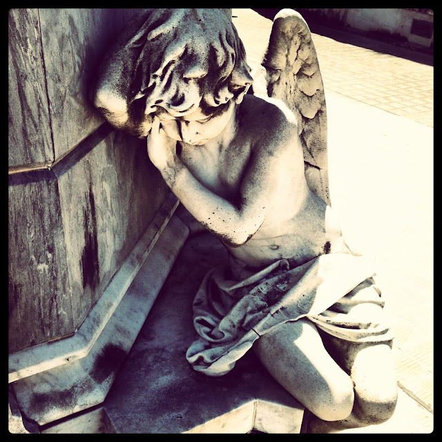 Eu contei para ele sobre minha vida amorosa e ele ficou assim, desolado. Chorando para sempre. (HAHAHAHAHA!) Mas acredito que ele esteja mais contente agora. Espero. As esculturas do cemitério são lindas. Vale a visita, ok?!