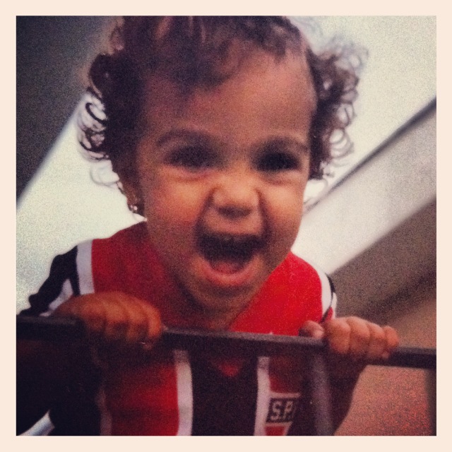 Olha aí! A prova de que desde criança eu já tinha peculiaridades aflorando. Nem sei quantos 2 ou 3 anos eu tinha, mas já estava alucinada pelo grande time Soberano (hehehe morram de inveja os torcedores dos outros times). Obviamente, estava gritando gol ou comemorando um campeonato vencido.