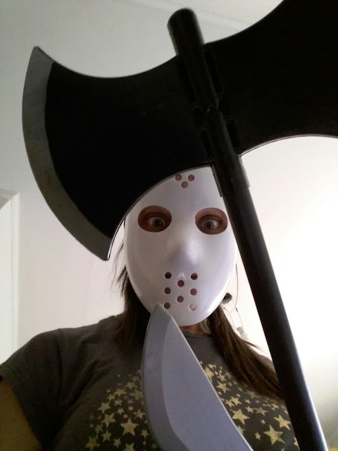 Essa é legal. Fui no Halloween de 2015, no Skull Bar. Me diverti horrores porque as pessoas olhavam para mim e diziam “tenho medo de você” e eu continuava encarando a pessoa com esse machado na mão e o facão na outra. Tremendamente hilário.