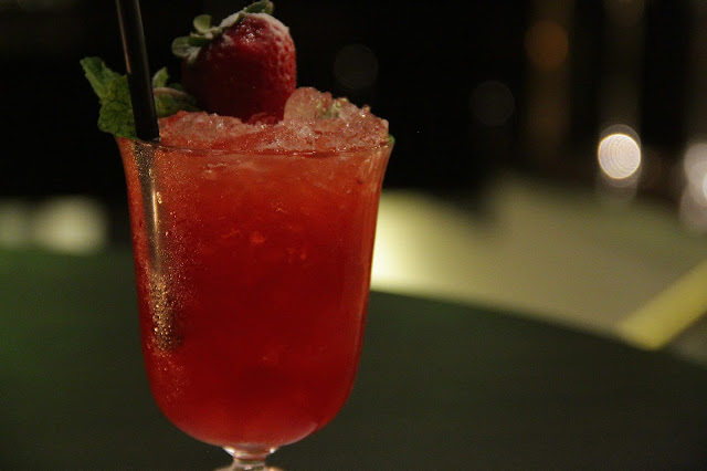 Como o bar fica ao lado da piscina do hotel, ela criou um menu AM, para ser servido até às 17h e um outro PM, servido até o bar fechar, geralmente em torno da 1h da manhã. Fui no período da noite, então provei os drinks noturnos (hehehehe). Vontade de provar todos, mas minha tolerância alcoólica não aguentaria e eu teria que sair de lá arrastada.