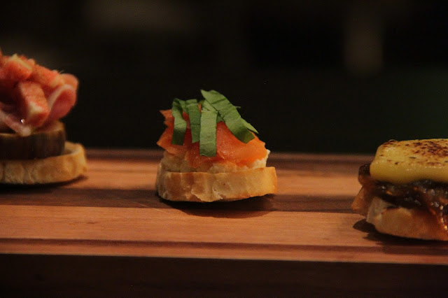 Ainda na degustação dos pratos, decidi provar as bruschettas deles. A porção vem com 6 unidades, duas de cada sabor, perfeita para compartilhar mesmo. Uma de presunto parma com figo (adoro esasa combinação), outra de salmão com ricota e rúcula, e a última de queijo com cebola caramelizada. Todas deliciosas.