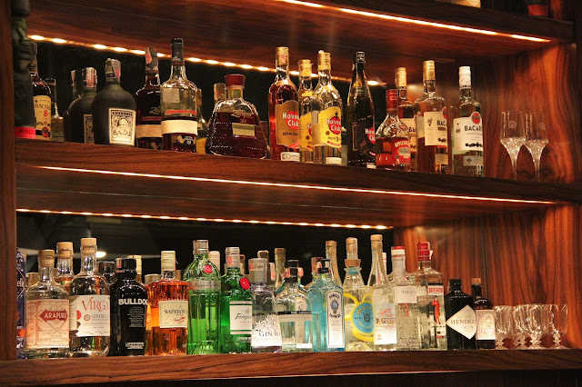 O ambiente é espaçoso, as mesas são distantes umas das outras, o que garante a privacidade da conversa das pessoas, seja lá que estiverem conversando. A decoração é muito elegante, mas o que chama a atenção quando entramos, é o tamanho do bar. Lindo, enorme e super brilhante. Se não bastasse isso, a variedade e qualidade das bebidas é fantástica! Vários tipos de gin, vodka, cerveja, vinhos, conhaque, whisky… É tipo a Disney para quem gosta de bons drinks o/ (eeeeee).