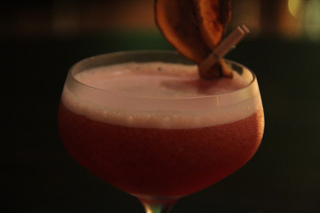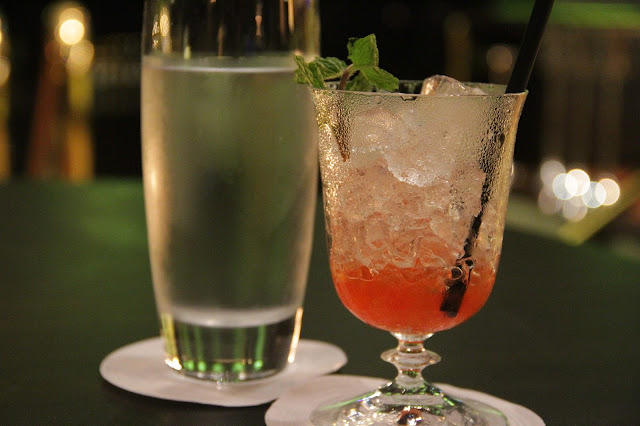 Comecei pelo Amaro Julep que leva Cynar, Shrup de framboesa, xarope de canela e prosecco. Delicioso. Uma explosão de sabores na boca. Além de ter uma apresentação maravilhosa. Adoro quando fico com dó de beber o drink. Isso significa que já comecei a bebê-lo mesmo antes de provar, bebendo com os olhos.
