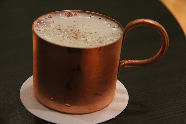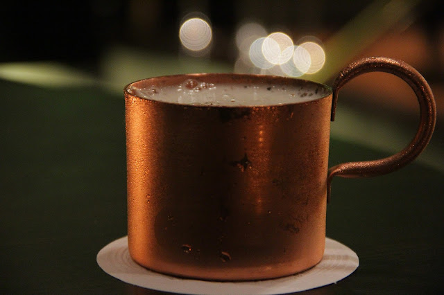Depois fui para um clássico que amo muito muito muito muuuuito!! A famosa Moscow Mule. Tenho um ranking secreto dessas belezinhas que ainda não divulguei, mas essa, com certeza, estaria bem rankeada na lista. Clássico, que eles deram ser toque colocando um pouco de pimenta em cima da espuma de gengibre. Não se assuste. A combinação funcionou.