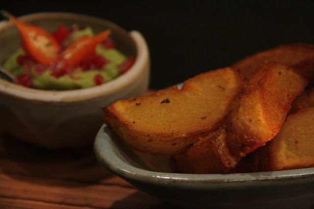 Para finalizar os pratos, provei o basicão. Batatas rústicas temperadas com páprica e acompanhadas de guacamole com umas pimentinhas. Super bem feitas, saborosas e equilibra muito quando misturamos tudo na boca.