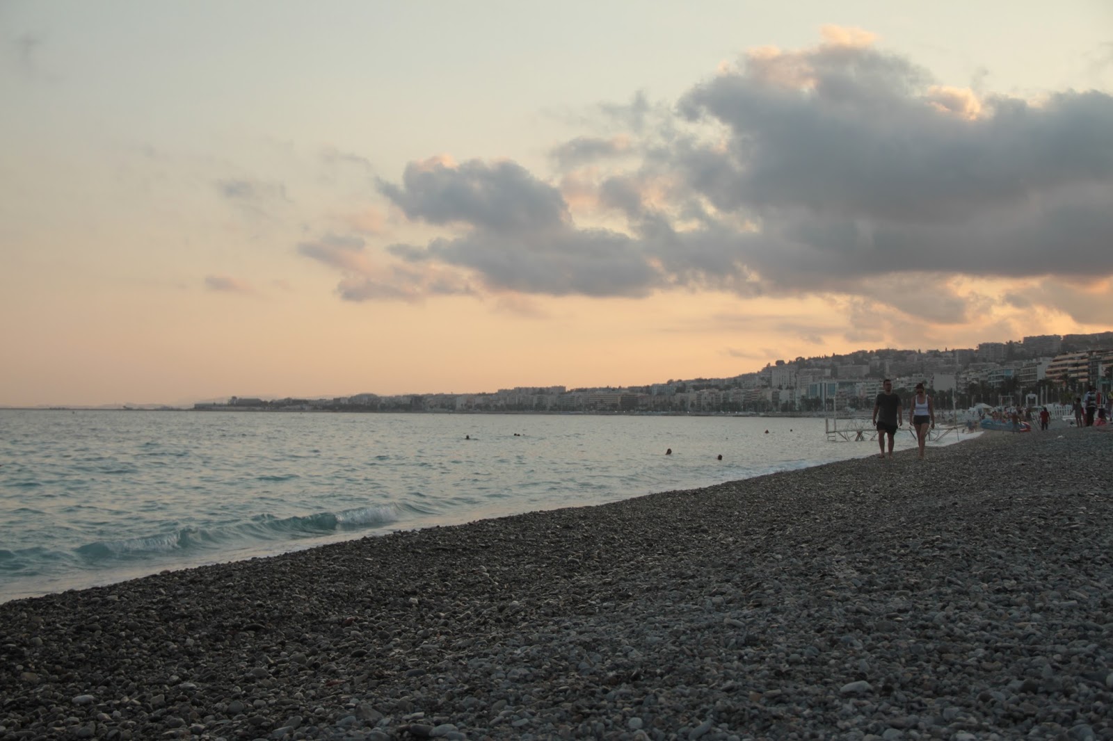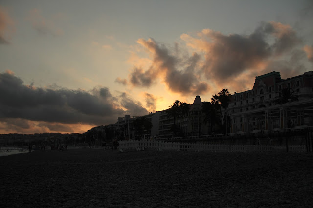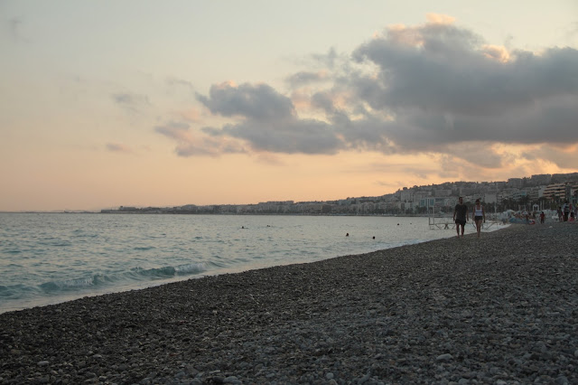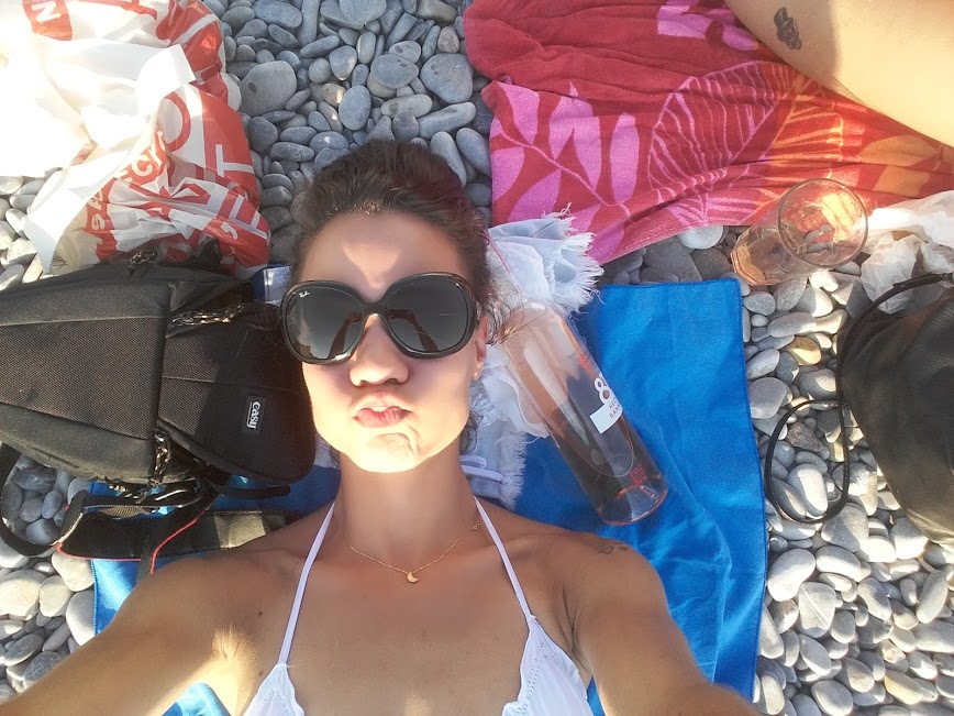 Chegava com a Roscela (a filipina maluca) por volta de umas 16:30 na praia, esticávamos a canga e ficávamos ali, comendo, bebendo (uma garrafa de vinho para cada uma, então imagina), tomando sol, paquerando os mocinhos franceses (affff, um mais lindo que o outro e não tínhamos foco para nada) e esperando pelo belíssimo pôr do sol que Nice nos dava.