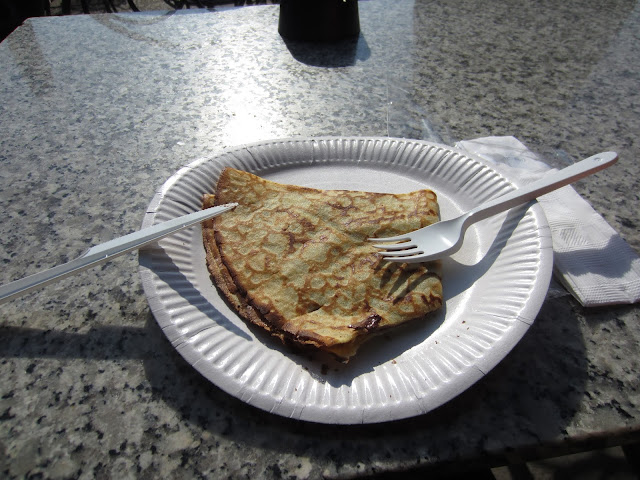 Depois de sentir um pouco da energia dessa mulher incrível, me sentei na beira do canal que tem bem no meio do jardim, para ver as pessoas que estavam dentro de barquinhos e ver os patos e cisnes nadando. Quando me deu fome, comi uns dois crepes e tomei suco, no restaurante que tem perto desse canal.