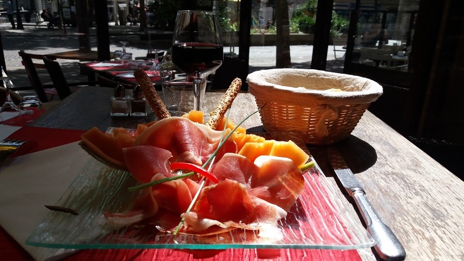 Ahhh! A gastronomia francesa e suas peculiaridades que eu tanto sou apaixonada. Uma delas é essa, a arte de misturar salgado com doce. No caso, o doce geralmente é uma fruta bem apetitosa. Uma das melhores combinações que eu provei, foi de presunto cru com aquele melão bem laranja e pão. Simples, porém perfeito e desceu bem com a garrafa de vinho tinto francês que eu estava tomando junto.