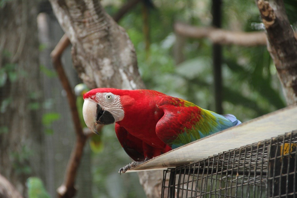 Também vi gaiolas de papagaios, papagaios soltos brincando uns com os outros, brincando de se pendurar pelo simples fato de querer ficar de ponta cabeça. Eu me divirto observando o comportamento desses animais. Depois tem uma gaiola gigante com dois tipos de tucanos e podemos ver todos eles bem de perto, um mais lindo que o outro. Que sonho esse lugar! e claro que também existe uma gaiola cheia de araras. Essas aves tão maravilhosas e cheia de cor e de vida. Eles possuem 3 tipos de araras lá. A vermelha, a araraúna e a Arara Canindé, que é aquela azul com o peito amarelo. Uma mais linda e louca que a outra. São muitas araras, convivendo juntas, em paz. Pelo menos no tempo em que fiquei lá elas estavam em paz (hahaha), mas sei que na natureza a história muda.