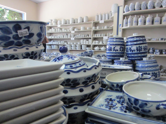 Quero contar um pouco da história sobre a fábrica de porcelanas, que é a única que produz a porcelana artesanal azul no Brasil. Foi fundada no ano de 1959, com produção pequena e fazia apenas por encomendas. A jarrinha azul de Portugal foi o primeiro pedido e fez tanto sucesso, que logo entrou na linha de produção. O processo era artesanal e continua sendo até hoje. Todo o maquinário era criado por eles e até a fábrica não se rendeu a tecnologia e até a queima das porcelanas é feita num forno à lenha.