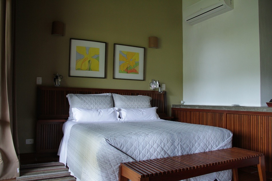 Acordar com o canto dos pássaros e ter vistas incríveis da Serra da Mantiqueira, são apenas algumas das coisas que irão nos deixar felizes. Todos os quartos da Pousada do Cedro são especiais e perfeitos para quem busca conforto, elegância e relaxamento. Em todos os quartos, os detalhes foram pensados e podemos ver todos os cuidados que eles tomaram ao criar um ambiente tão acolhedor para todos os hóspedes. Encontramos uma cama gigante com vista para a Serra, com janelas e portas de vidro (que ficam vedadas com cortinas especiais quando quisermos dormir), encontramos lareira, uma varanda enorme e linda com rede e algumas cadeiras. E também encontramos um banheiro lindo e dependendo do modelo de quarto que você escolher, pode ter um ofurô com vista para a serra também.