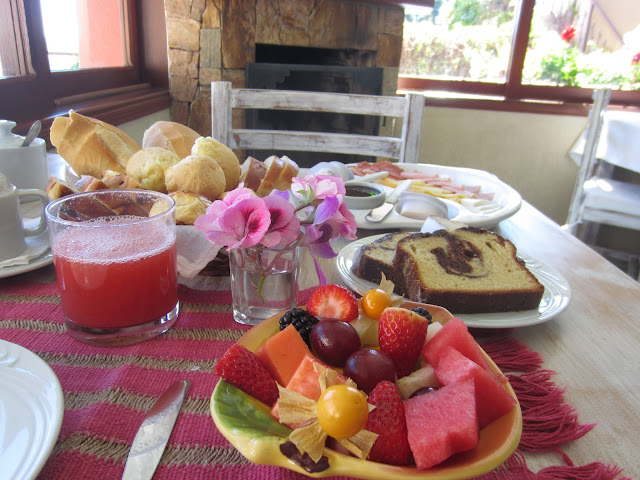 E o outro quesito que me fez cair apaixonadinha por lá, foi o café da manhã. Quando eu disse que eles ganharam o premio de melhor café da manhã de Monte Verde (pelo menos dos que eu já experimentei), não estava sendo exagerada. Mas não pense que é algo grandioso, com balcões enormes abarrotados de comida. Nada disso. Lá o conceito é simples. Você olha o cardápio, escolhe o que quer (o que quiser, a quantidade que desejar) e eles preparam na hora para você.