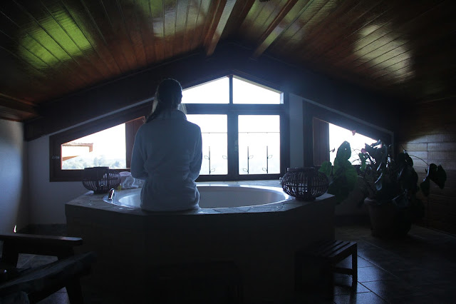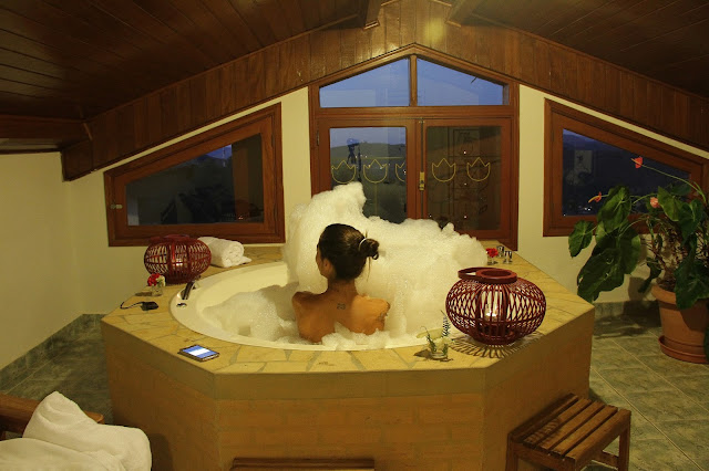 Nem preciso dizer que eu fiquei apaixonada, né?! Tive que curtir essa banheira algumas vezes, para ajudar a relaxar, pois os dias foram bem cansativos. Outro detalhe que eu amei, foi o fato de ter lençol térmico na cama. Eu seeeempre sofre com o frio (especialmente em Monte Verde) e dormir, mesmo de pijama, é um parto. Esse lençol foi algo abençoado na vida da friorenta aqui. o/