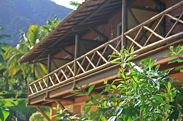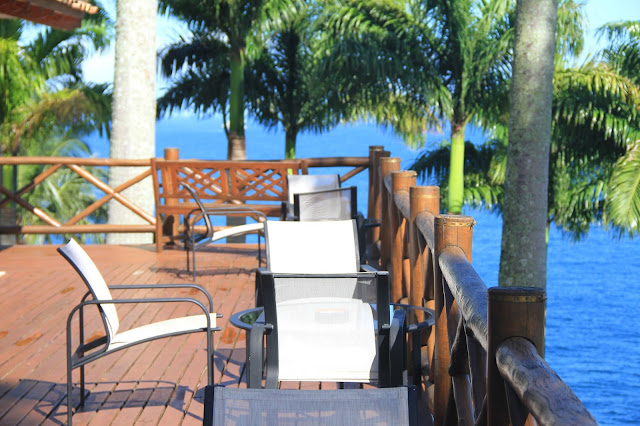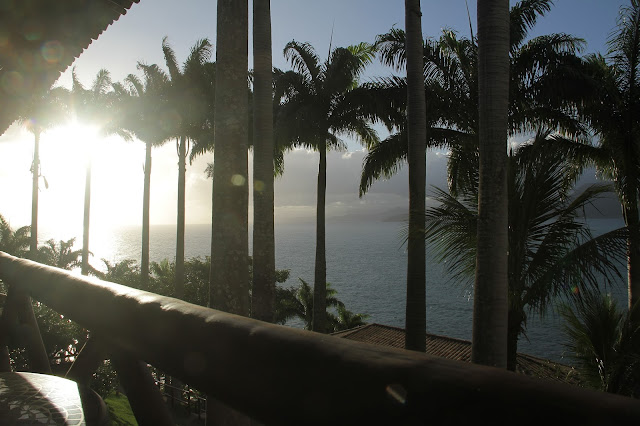 Mas hoje não quero falar sobre a ilha e sim, sobre uma pousada que conheci lá neste final de semana. O lugar se chama Pousada Solar Singuitta e fica bem na parte sul da ilha, quase no final da estrada, longe do centro e perto do sossego e exclusividade. Existem outros hotéis bacanas na ilha, mas esse tem a melhor vista. Com toda certeza! Ele foi construído no alto da montanha, cercado de natureza, palmeiras enormes e lindas, com o mar batendo nas pedras que ficam ao redor da parte baixa do hotel. Simplesmente incrível!